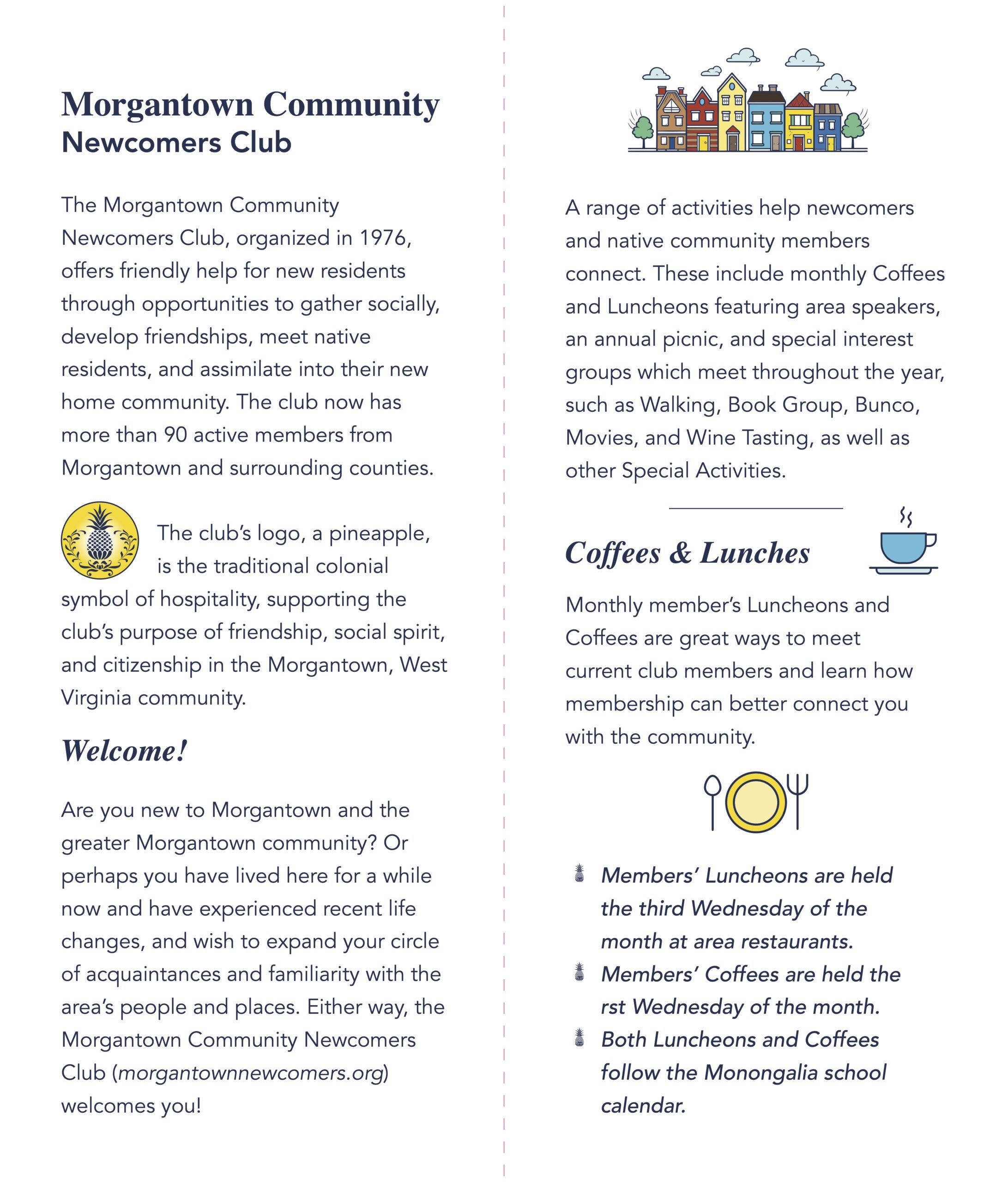 Mailing Address: Community Newcomers Club, Inc. PO Box 481 Dellslow, WV 26531